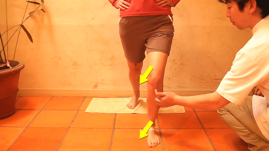 1、下腿の外旋度合い(膝のねじれ)をチェック