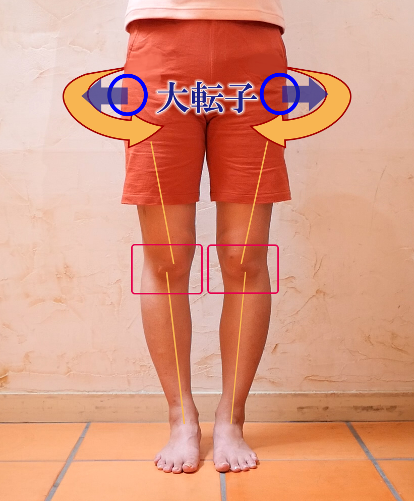 これが内旋した状態になると、大転子が横に張り出し、お尻の横幅が大きく見えることがよくあります。